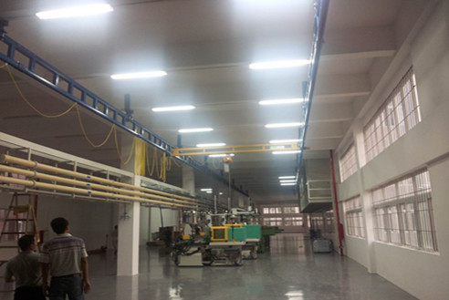 ● 客戶車間現(xiàn)場總長60米,但前期客戶的注塑機(jī)并未購買完全,所以起重機(jī)軌道僅做了45米。待后續(xù)客戶廠房布滿后,我們可再將固定型軌延長;